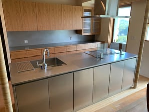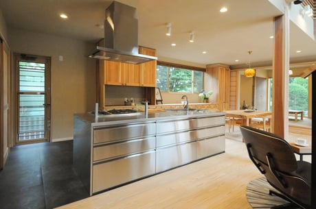 どのようなインテリアにも溶け込み圧倒的な存在感を放つステンレスキッチン。厨房機器や医療機器にも使用されるこの素材のみを使ってオーナー様の意向を叶えることが当社の使命だと考えております。